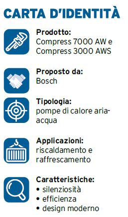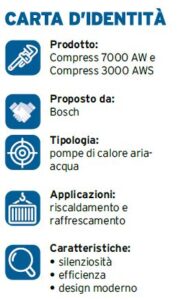 Bosch Termotecnica propone diverse soluzioni adatte ad ogni singola esigenza, tra cui la pompa di calore Compress 7000 AW silenziosa, efficiente e dal design moderno ed elegante e Compress 3000 AWS, per una combinazione di efficienza e flessibilità.
