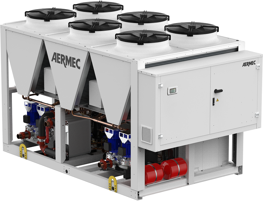 La serie NRP Aermec offre una gamma molto ampia che va da 43 kW a 963 kW di potenza frigorifera nominale.
