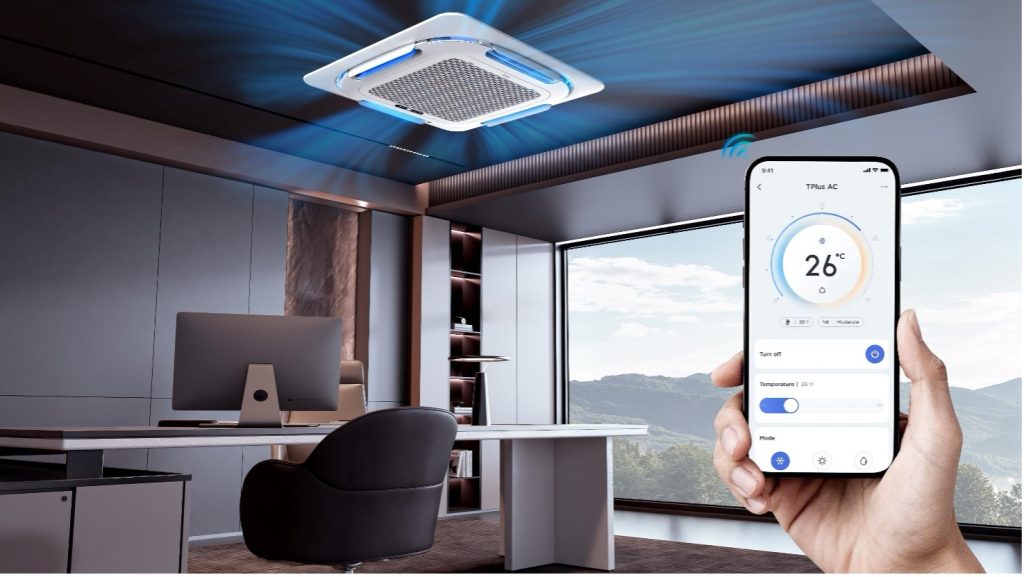 Il controllo a tre zone permette una gestione precisa della temperatura per ambienti con esigenze diverse, mentre l’interfaccia Wi-Fi e l’aggiornamento OTA garantiscono monitoraggio da remoto e manutenzione evoluta. Grazie al protocollo ModBus RTU e alla conformità SG Ready, la soluzione è predisposta per smart grid e sistemi ibridi con caldaie o fonti rinnovabili. Accanto alle soluzioni idroniche, TCL propone sistemi ad aria dedicati al settore Light Commercial, in grado di operare come pompe di calore in ampi intervalli termici. Le unità Cassette 4 vie, Convertibili a pavimento/soffitto, Canalizzabili e Console adottano compressori con algoritmo di controllo Inverter AI TCL, mantenendo la temperatura entro ±0,5 °C e riducendo i consumi fino al 60%. Il refrigerante R32, gli scambiatori trattati anticorrosione e l’interfaccia ModBus ne certificano l’impronta professionale della gamma, mentre il controllo Wi-Fi tramite l’app TCL Home facilita la gestione centralizzata negli ambienti commerciali.