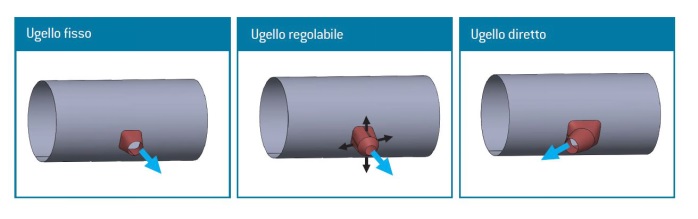Gli ugelli possono essere di tipo fisso, direzionabile e regolabile.