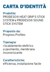 Nel complesso panorama dell’edilizia contemporanea, in cui è essenziale guadagnare millimetri e ogni decibel fa la differenza, Progress Profiles presenta l’evoluzione di due fra le sue più rinomate soluzioni: PRODESO® HEAT GRIP 5 STICK SYSTEM, riscaldamento elettrico a pavimento e a rivestimento sottile ed efficiente, e PRODESO® SOUND STICK SYSTEM, la membrana insonorizzante perfetta per ridurre drasticamente i rumori da calpestio.