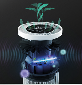 • Luce ultravioletta, comando a distanza, motore DC brushless ed auto-scollegamento in caso di ribaltamento.