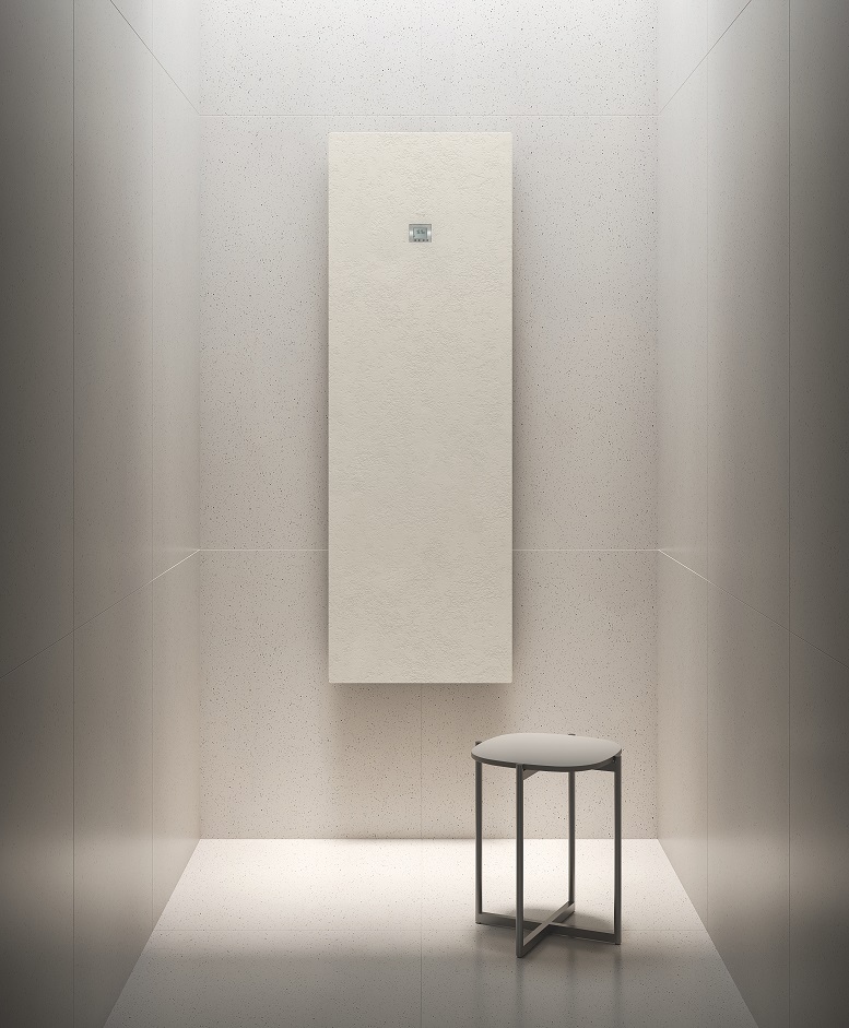 Radiatore Vulcano Concrete 0T Blanco Roto ı Skin Panels Liso DP0 Blanco ı Sgabello Sen 0T Blanco Roto