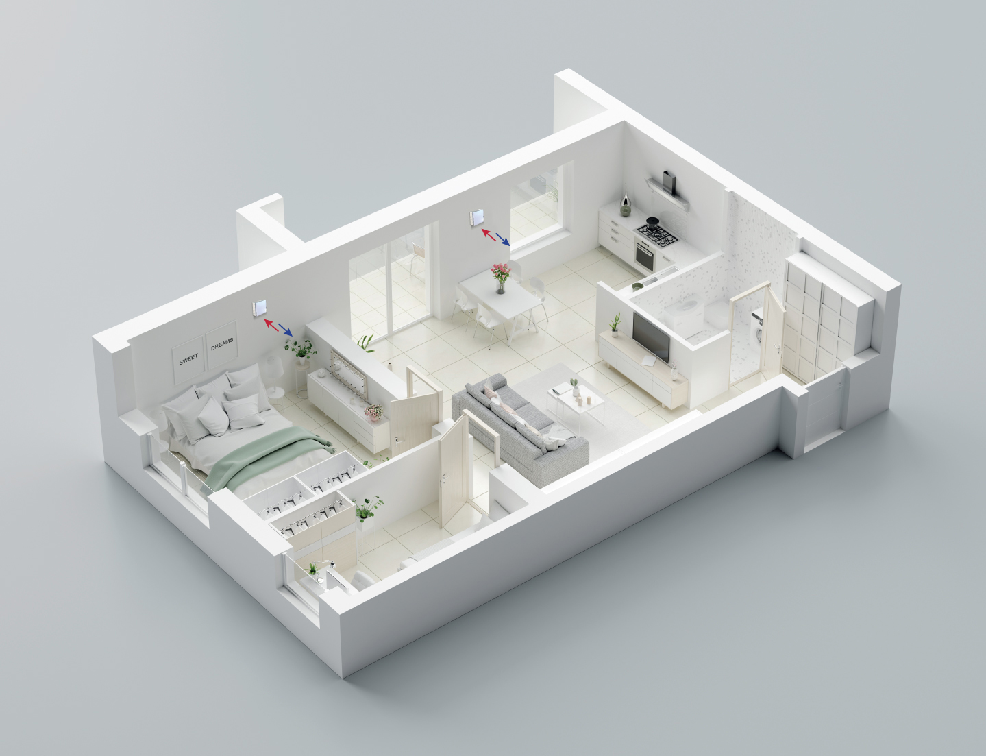 Impostando, ad esempio, AUTO HR in caso di umidità oltre la soglia di allarme (60%, 75% o 90%) in automatico l’estrazione dell’aria avviene alla massima velocità. Con AUTO NIGHT un sensore di luce ambiente rileva la presenza o l’assenza di luce così da stabilire in autonomia la velocità di funzionamento.