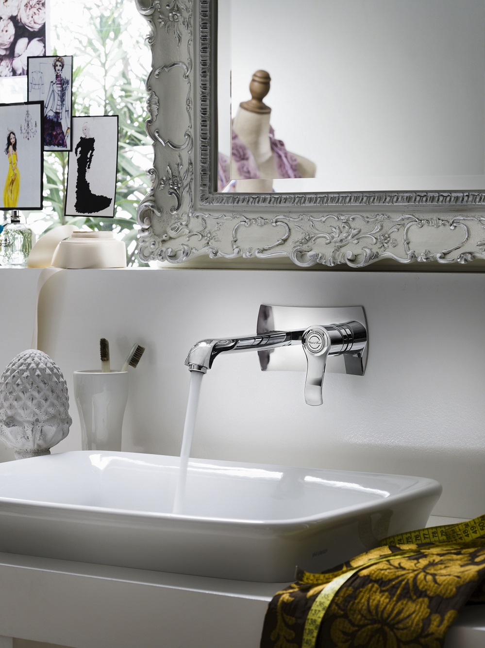 Oltre alla classica rubinetteria a tre fori e a parete, Sofì risolve con eleganza anche il miscelatore, proprio grazie al design della cartuccia ad immersione Nobili Widd®28, brevettata dall’azienda italiana. I 28 mm di diametro consentono infatti di assottigliare il corpo del miscelatore su cui si inserisce a 45° la bocca di erogazione che disegna una curva morbida. Un dettaglio che fa la differenza. Il regolatore dinamico di portata WaterSaving: un brevetto Nobili per risparmiare sui consumi d’acqua. In pratica l’impugnatura con cui si attiva o si interrompe il flusso d’acqua dispone di un meccanismo che frena l’apertura a metà corsa. Superata la lieve resistenza, il miscelatore eroga la totalità della portata.