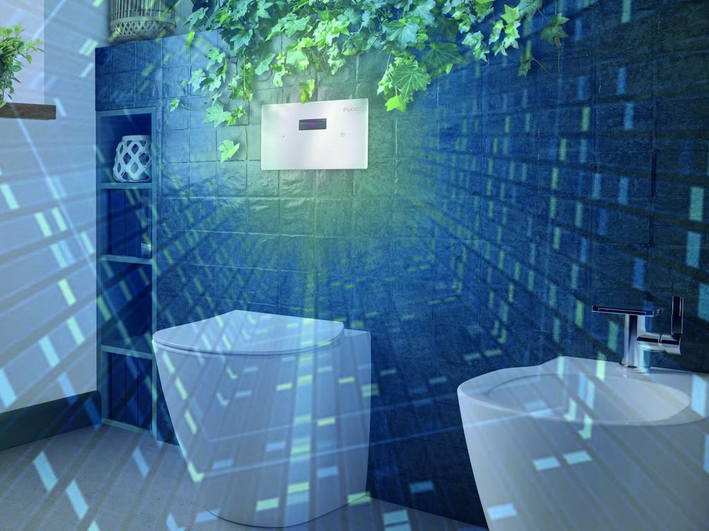 Con smartphone e APP si può programmare la distanza dal wc alla quale entra in azione la cassetta e i litri d’acqua scaricati.