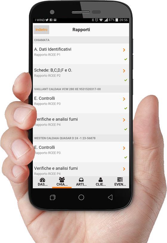 manutenzioni in maniera rapida ed efficiente, pianificando le uscite di manutenzione tramite percorsi ottimizzati, attraverso la visualizzazione delle agende dei tecnici stessi settimanalmente e mensilmente. Geolocalizzando i tecnici su mappa GPS e controllando sulla la loro agenda gli appuntamenti del giorno, il cliente potrà ricevere notifica tramite email, SMS e Push sulla tempistica di attesa e il manutentore essere informato sui prossimi interventi in calendario.