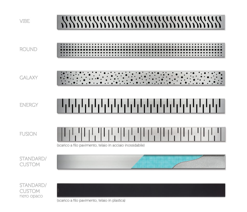 Per offrire soluzioni personalizzabili e soddisfare esigenze specifiche di progettazione la griglia standard è disponibile anche nella versione CUSTOM ovvero piastrellabile. Grazie a questa versione della griglia è possibile adattare lo scarico della doccia alle esigenze estetiche del tuo bagno garantendo un’esperienza unica e completamente adattata e nascosta nello spazio intorno.