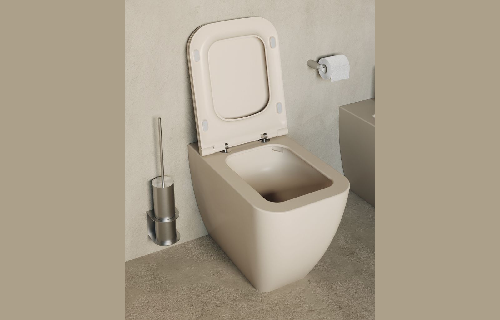 Il funzionamento di VERTIGO avviene attraverso un getto di acqua all’interno del vaso che, erogato tramite un foro laterale, genera un potente flusso “a vortice” che copre perfettamente tutta la superficie senza fuoriuscire dal sanitario. QUADRA è stata la sfida più interessante per il nostro dipartimento tecnico; infatti, proprio a causa della originale forma e degli angoli squadrati, l’applicazione del sistema VERTIGO, in questo caso, ha richiesto uno studio tutt’altro che banale.