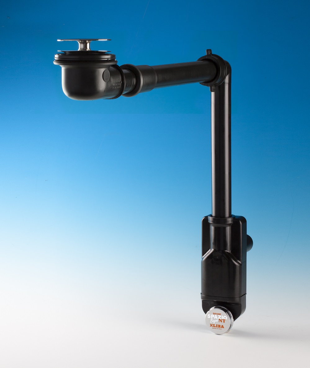 Il sifone salvaspazio ispezionabile Spazio Bagno NT di Lira (Valduggia, VC) è disponibile nella nuova colorazione nera: una configurazione che trasforma il sifone in un vero e proprio elemento d’arredo, senza rinunciare alla funzionalità.