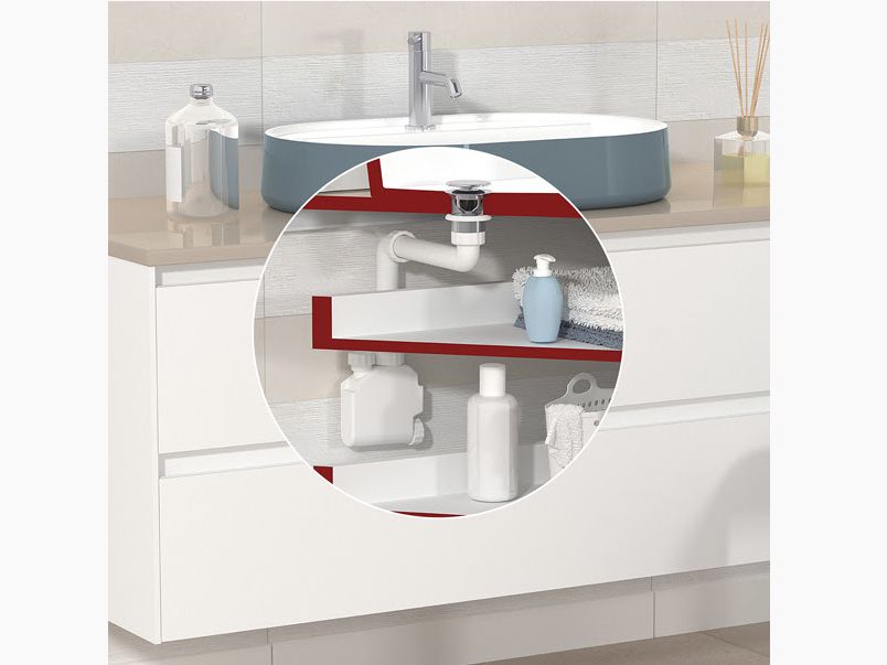 Una precisa risposta a queste esigenze è Squid, il sifone salva-spazio in ABS che, con il suo minimo ingombro a parete di solo 43 mm, è realizzato per mobili bagno che necessitano di molto spazio utile.