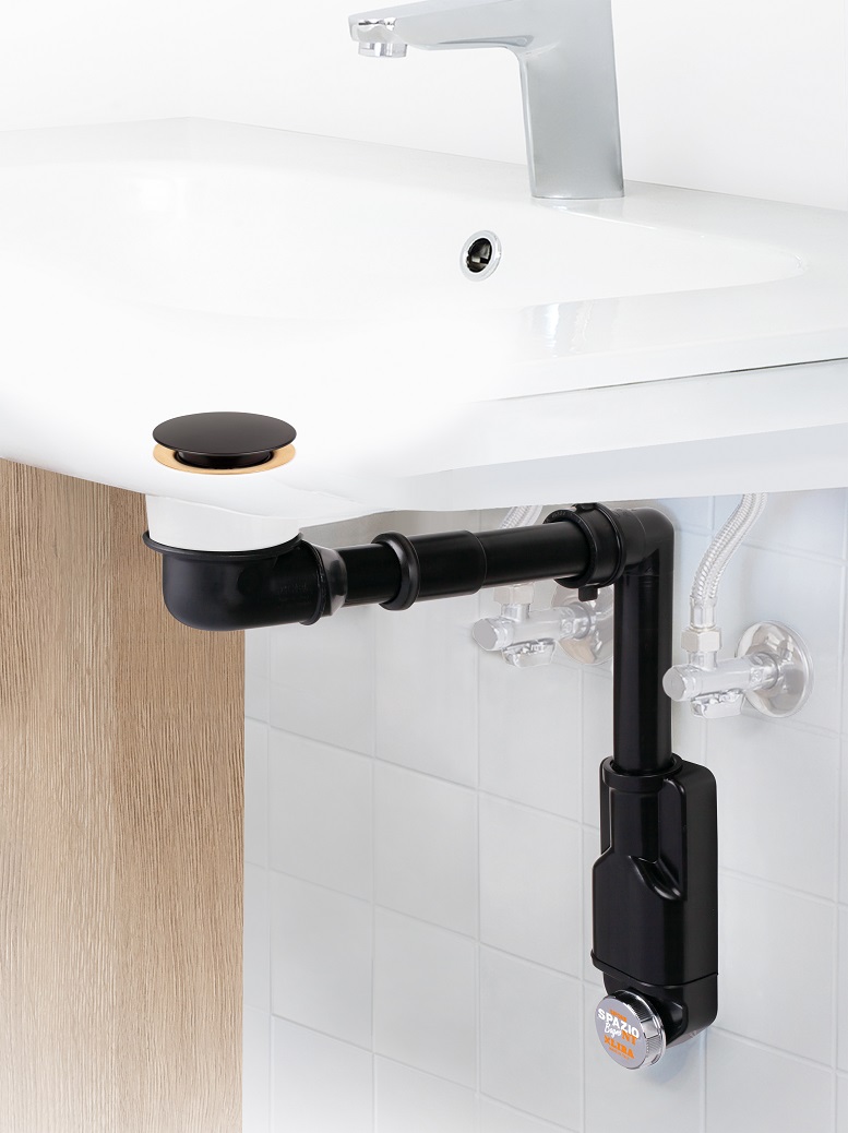 Piletta BasketIl sifone salvaspazio ispezionabile Spazio Bagno NT di Lira (Valduggia, VC) è disponibile in colorazione nera: una configurazione che trasforma il sifone in un vero e proprio elemento d’arredo, senza rinunciare alla funzionalità.