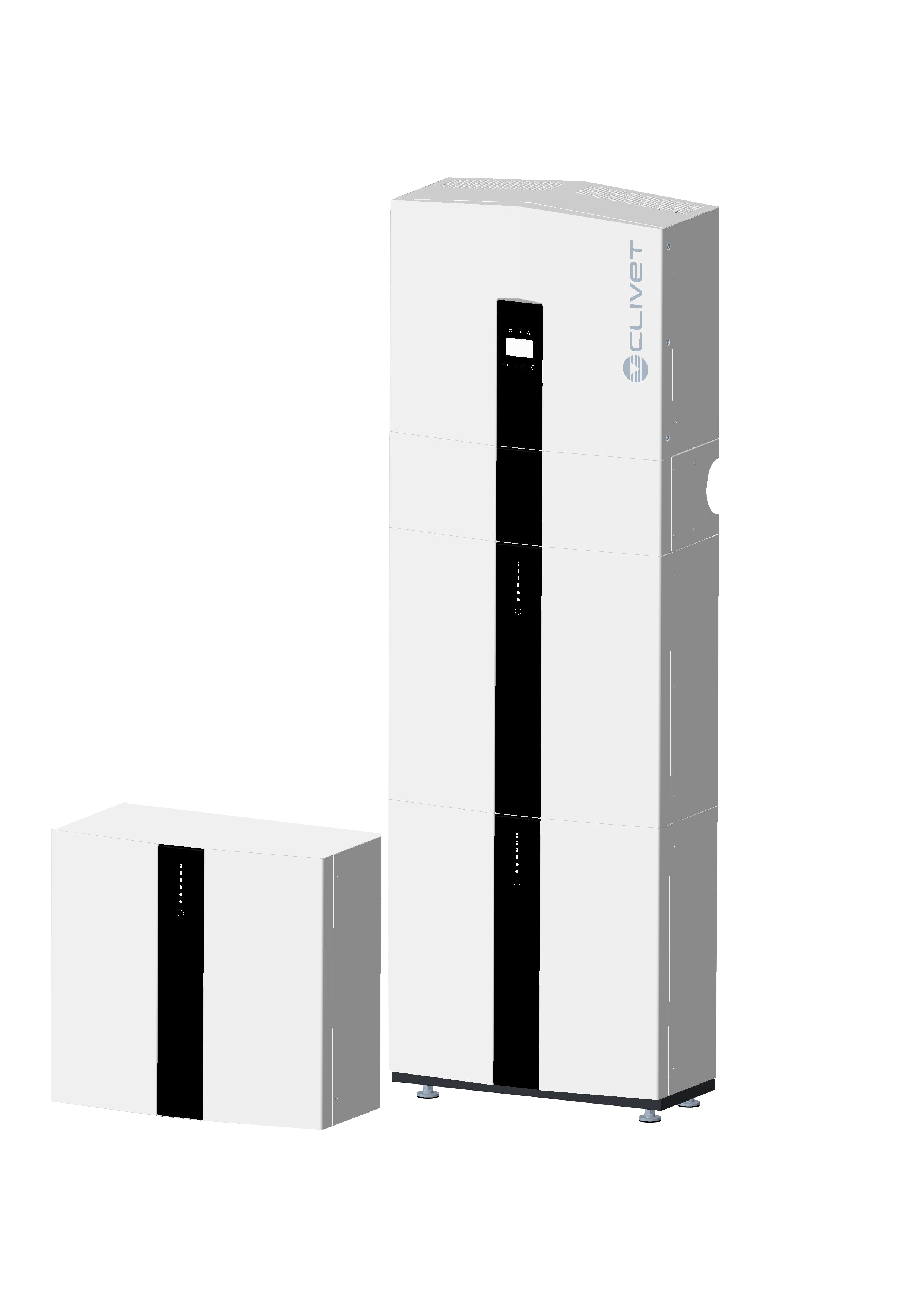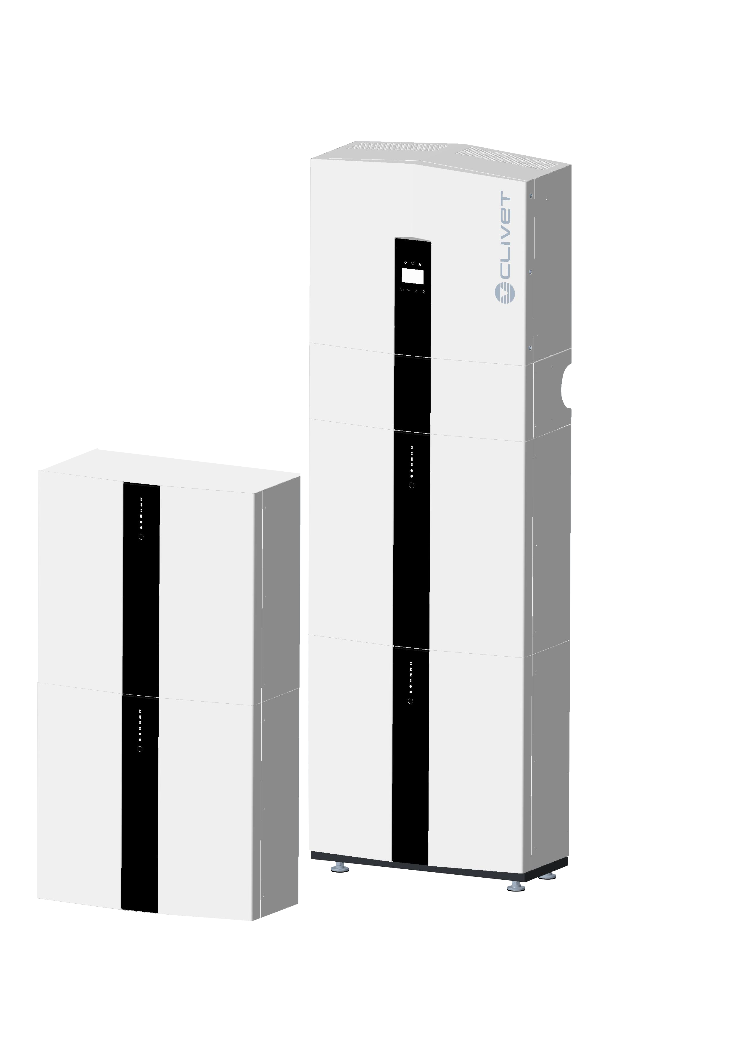 Clivet Sinergy di Clivet (Feltre, BL) è un innovativo sistema di accumulo energetico per immagazzinare l’energia elettrica prodotta dai pannelli fotovoltaici nelle ore di sole e utilizzarla nelle fasce orarie serali e notturne, consentendo agli impianti di climatizzazione in pompa di calore di lavorare in completa autonomia e fornire l’energia a tutte le utenze domestiche. Le abitazioni raggiungono così un completo regime di autosufficienza energetica. L’uscita di backup, senza limitazioni di potenza e capacità, garantisce inoltre continuità nell’erogazione dell’energia elettrica in caso di blackout.