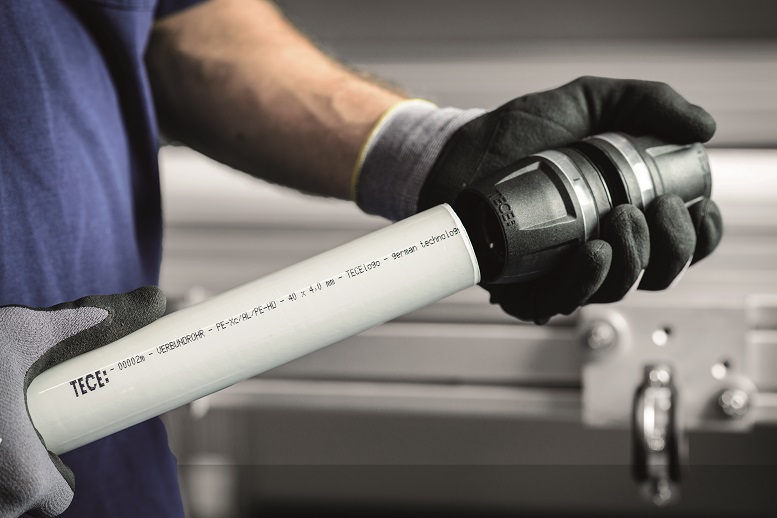 Con il sistema di installazione professionale TECElogo, presentato da Tece (Castelnuovo Rangone, MO) non avrai più bisogno degli attrezzi di pressatura. Il sistema viene semplicemente installato a mano. È possibile ottenere collegamenti sicuri con TECElogo in modo comodo, facile e preciso.