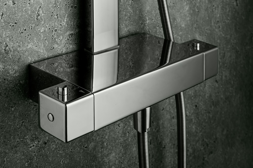 La colonna CONCEPT TWO si presenta completa di miscelatore termostatico ad innesto con deviatore incorporato per governare apertura e chiusura dell’acqua, la cui particolarità è quella di essere filo muro come la colonna e fungere anche da mensola d’appoggio. Può essere abbinata a qualsiasi doccia a mano, come la rettangolare PIXEL monogetto in ottone cromato oppure la quadrata NADAL Q, monogetto anticalcare in ABS cromato dotata di tecnologie Water Saving ed Air System, oltre a flessibile e supporto scorrevole coordinati.