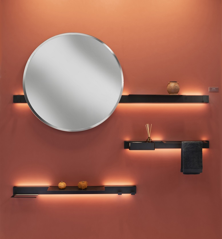arredoLa versatilità, infatti, è una delle caratteristiche fondanti della collezione STRIP che si sviluppa lungo una barra luminosa personalizzabile con specchi, mensole, ganci e oggetti d’uso quotidiano e che può essere composta in maniera originale sia nella scelta delle funzioni – come appendere, contenere, specchiare, appoggiare, profumare, ricaricare e riprodurre musica – sia delle finiture e dei colori.