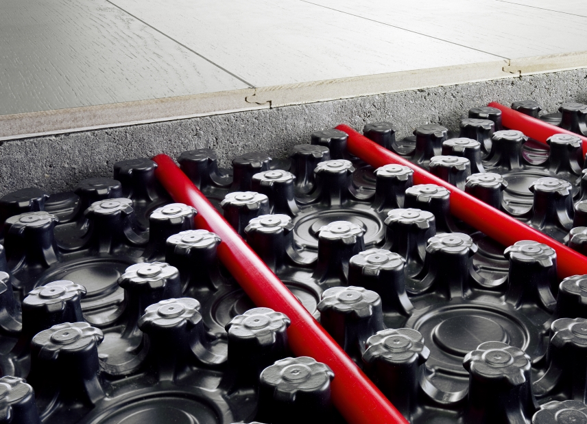 Il pannello è a bugne modulare che, nel caso in cui sia dotato di isolamento, porta l’altezza del sistema a 45 mm. Il tubo è di polibutilene, resistente ma flessibile nella posa. Il sistema è particolarmente adatto a vani con problemi di rispetto di altezze minime, in caso di urgenza dell’intervento e se il peso di un massetto tradizionale non possa essere sopportato dal solaio esistente.