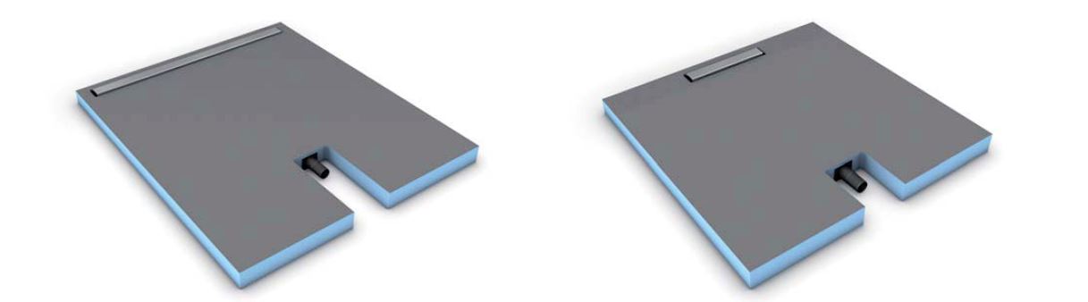 Lo scarico, situato molto vicino alla parete e dotato a scelta di una canaletta corta o lunga, crea un’estetica di raffinata eleganza e al tempo stesso lascia maggior spazio libero da dedicare al puro piacere della doccia.
