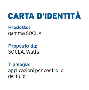 Il brand di Watts, Socla, offre una gamma completa di dispositivi progettati e realizzati per garantire protezione e regolazione in tutti i settori interessati dal controllo dei fluidi, sia negli edifici civili che in quelli industriali.