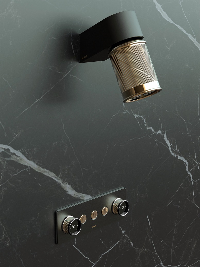 Ispirato all’eleganza dei cruscotti artigianali e sofisticati delle auto sportive europee e degli yacht di lusso, Riva Wall Mount incarna il gusto per i dettagli, la precisione meccanica e la bellezza senza tempo. Il soffione cilindrico orientabile, impreziosito da una raffinata zigrinatura, unisce estetica e funzionalità, offrendo un controllo preciso e un comfort totale. È regolabile fino a 15 gradi in ogni direzione, per un getto d’acqua sempre perfettamente orientato.