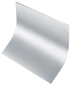 Bocca a parete in acciaio inossidabile con finitura lucidata a specchio. Si presenta come una lastra da 250 mm che si curva verso l’esterno, con un ampio flusso a cascata.
