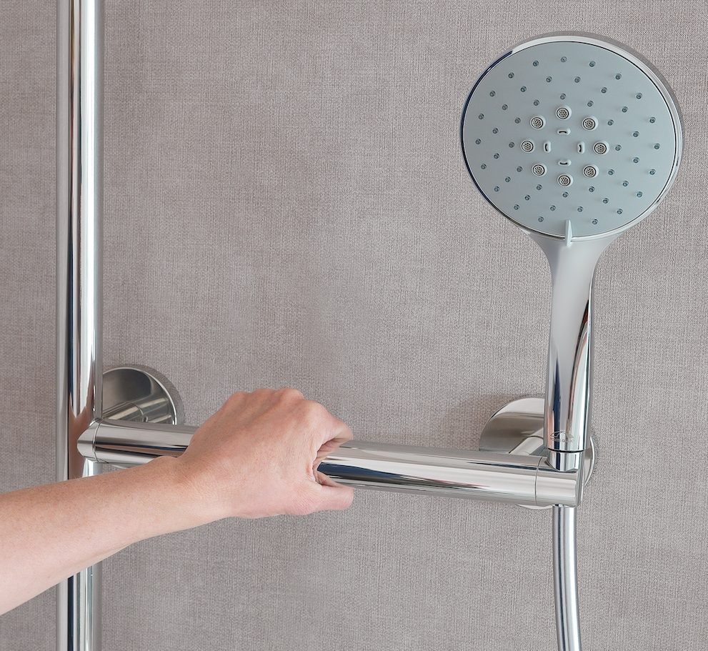 SOLO Shower si inserisce perfettamente all’interno di questa fotografia, essendo un sistema di elementi coordinati – set doccia, colonne doccia, maniglie ed accessori – concepito per configurare una zona doccia e renderla assolutamente sicura. Tutti gli articoli rispondono alle norme di qualità e sicurezza e aiutano a scongiurare i pericoli di cadute causate da improvvisi scivolamenti.
