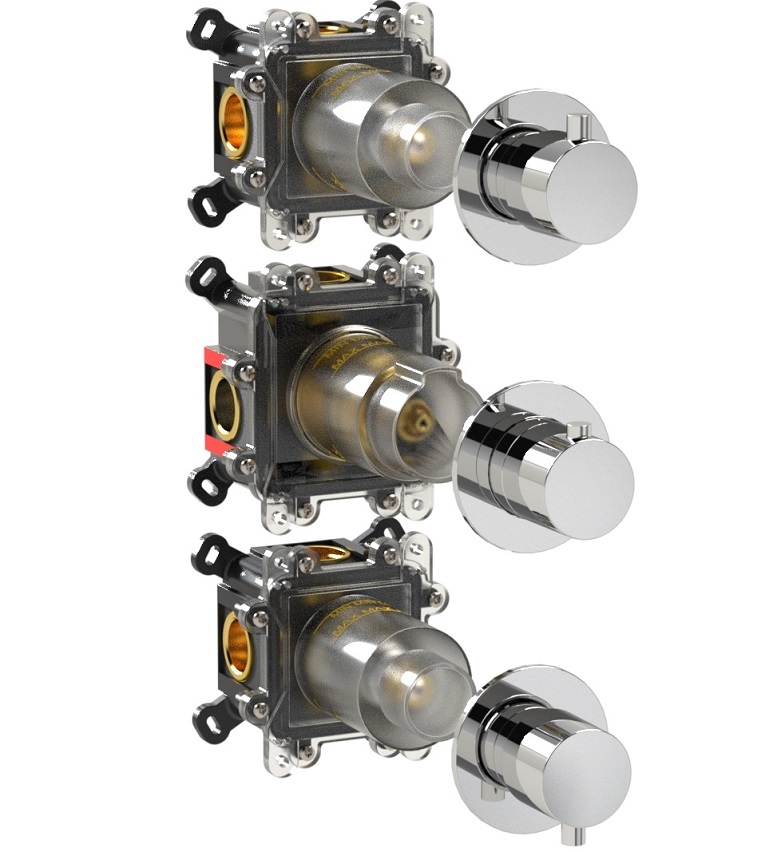 Seventy si configura, quindi, come una serie modulare e componibile caratterizzata da elementi singoli che possono essere disposti in fase di installazione secondo le esigenze o le preferenze del cliente. I particolari che la costituiscono – miscelatore termostatico, rubinetto di chiusura, collettore e deviatore – sono tutti forniti di scatola di fissaggio in plastica per assicurare semplicità di installazione e garanzia di tenuta e isolamento.