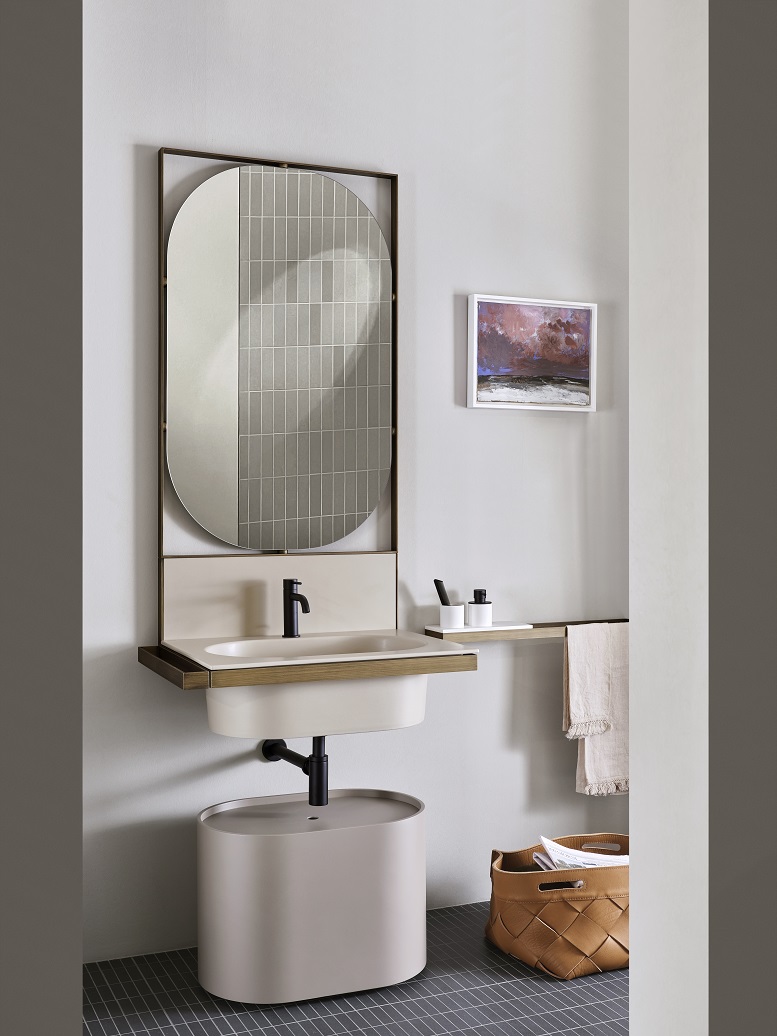 Elle Ovale e Tonda, il lavabo sospeso ultra light ed elegante, disegnato da Andrea Parisio e Giuseppe Pezzano, con le sue geometrie ritmate propone nuovi linguaggi visivi che raccontano la stretta relazione tra interior design e arte dell’abitare, tra quotidianità e ricerca. Il risultato è una soluzione votata all’estetica, ma anche e soprattutto alla capacità di soddisfare esigenze funzionali grazie al lavabo con ampio bacino, alla possibilità di integrare il suo specchio, al portasciugamani laterale e alla mensola porta accessori.