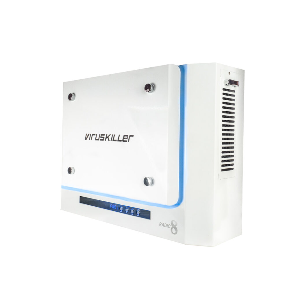 VIRUSKILLER ™ 401 è un purificatore d’aria altamente efficace grazie alla combinazione di tre livelli di filtraggio, una camera di reazione con 8 lampade UV-C e 40 filtri esagonali TiO2 cromati, rimuove i virus e i batteri con un solo passaggio e contribuisce a rendere gli ambienti chiusi più sicuri e sani.