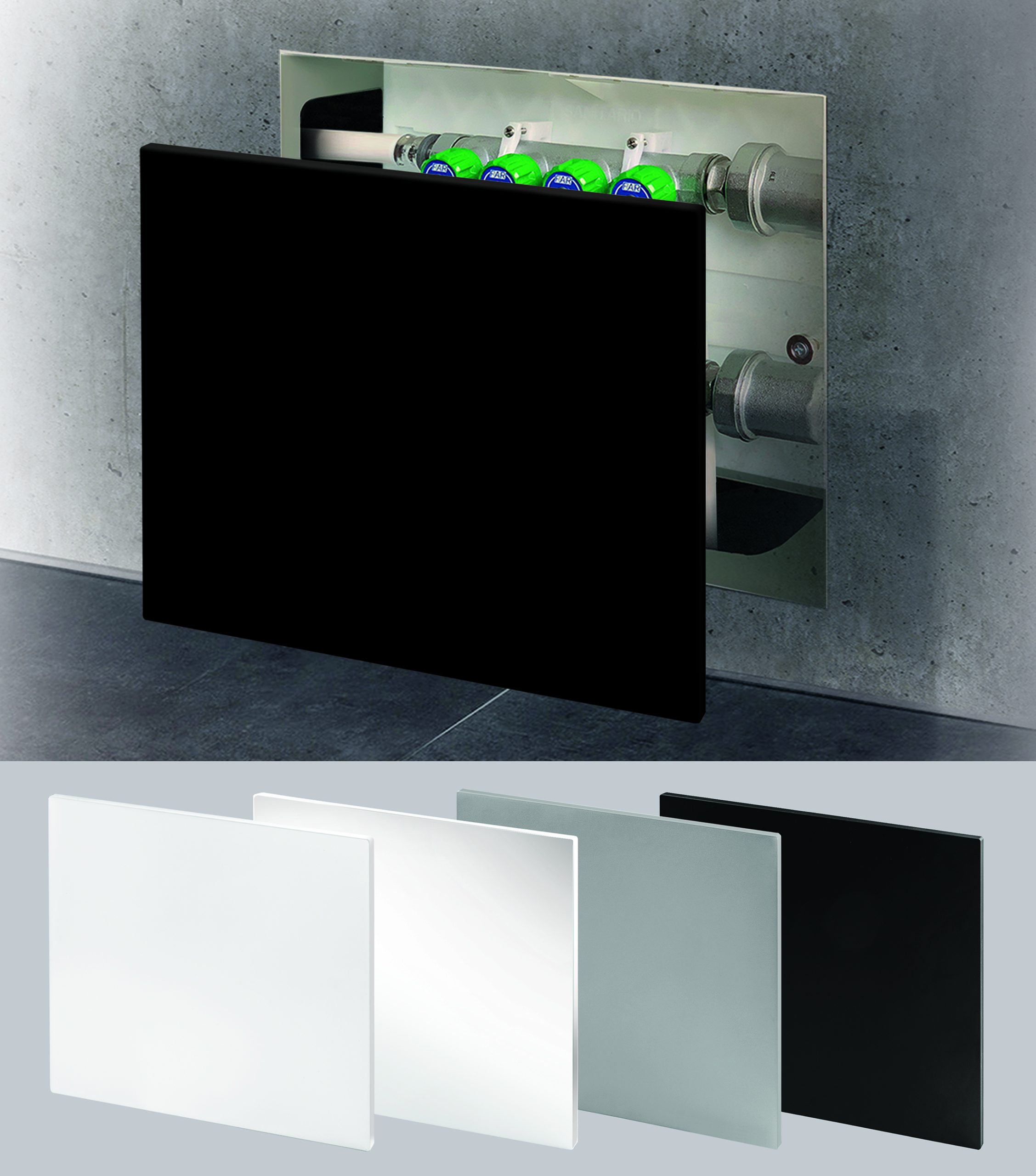 In funzione della profondità d’incasso della cassetta “TUTTO”, si dovranno installare le viti con il dischetto magnetico leggermente sporgenti rispetto alla parete e regolarne la profondità per fare aderire completamente lo sportello al muro. I nuovi sportelli BeautyFAR sono realizzati in materiale plastico con finiture bianco lucido, bianco opaco, nero opaco e grigio satinato così da garantire un’ottima soluzione d’arredo e varietà di scelta all’utente finale.