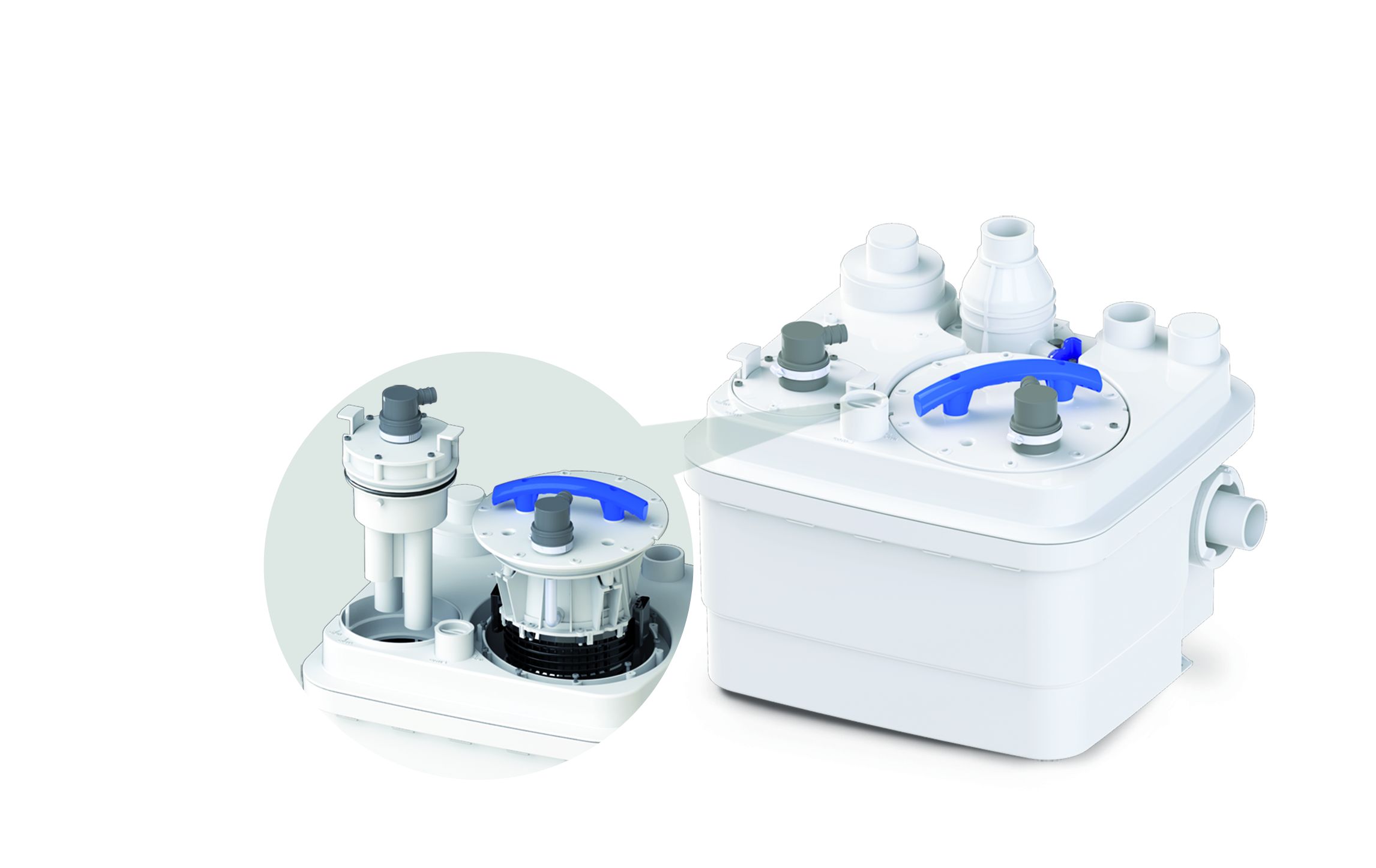 Sanicubic 1 è una stazione di sollevamento per uso singolo e collettivo (abitazioni singole, attività commerciali) e gestisce le acque di scarico di WC, bagni, cucine e lavanderie.