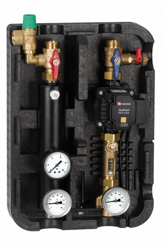 Tutti i modelli offrono bilanciamento idraulico, misurazione e controllo del flusso d’acqua. Ciò è possibile grazie all’integrazione della valvola TacoSetter Inline 130, che consente di impostare e monitorare con precisione il flusso d’acqua del circuito solare, senza l’utilizzo di ulteriori strumenti di misura.