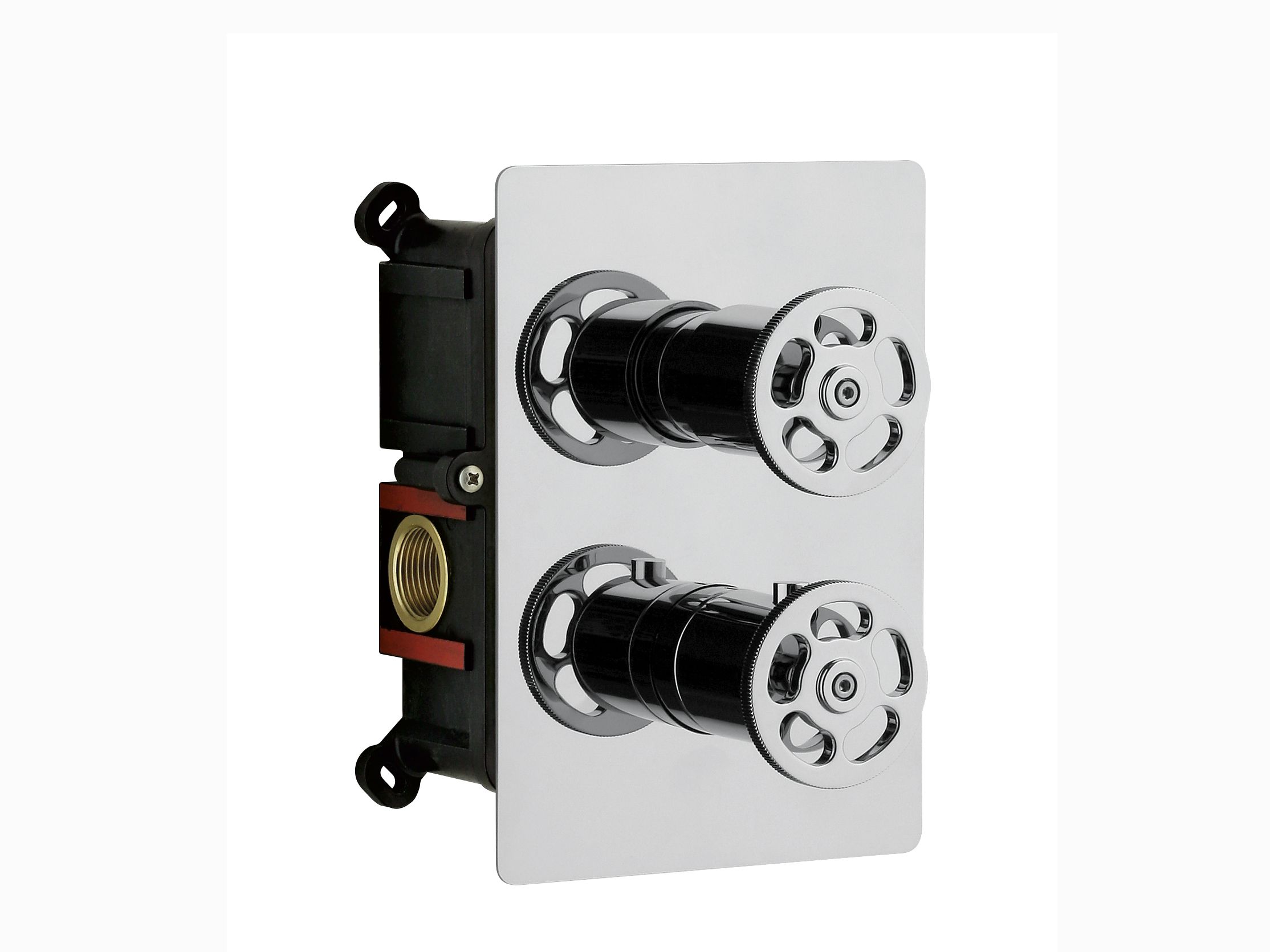 Il dettaglio delle maniglie che ricordano gli ingranaggi dei macchinari industriali dona un aspetto urban-style agli ambienti bagno contemporanei, ideale per contesti di tendenza ma in grado di accordarsi anche agli arredi più tradizionali. Il forte richiamo al mondo della meccanica, inoltre, richiama il valore intrinseco dei miscelatori OMBG: la cartuccia termostatica e il sistema di chiusura progettati e realizzati interamente dall’azienda, garanzia di affidabilità funzionale destinata a durare nel tempo.