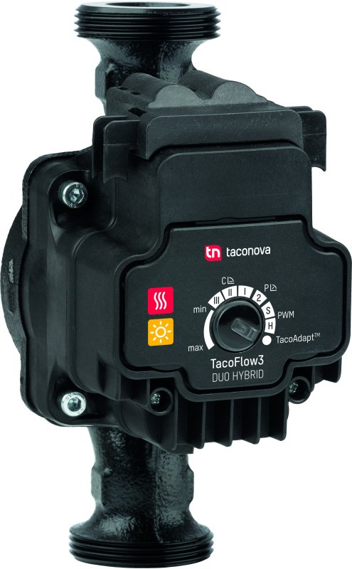 TacoFlow3 Duo Hybrid è invece specificamente sviluppata per applicazioni che combinano una pompa di calore con una caldaia o con un impianto solare termico, gestendo in parallelo la produzione di calore da fonti diverse.