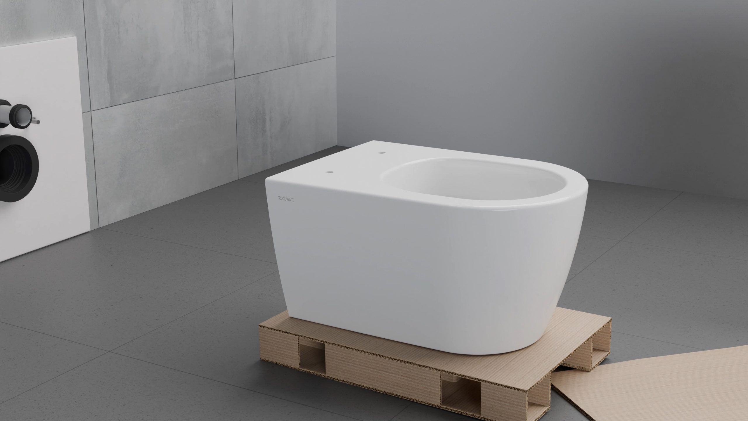 Per rendere il lavoro ancora più semplice, Duravit ha trovato una soluzione intelligente anche per l’imballo: il vaso può essere tolto direttamente dalla sua scatola su una robusta base di cartone e posizionato con il minimo sforzo davanti alla parete. Grazie al supporto rialzato, il vaso si trova già all’altezza di lavoro ottimale e può essere semplicemente posizionato sulle viti di fissaggio senza che chi lo installa debba piegarsi eccessivamente e senza l’aiuto di una seconda persona.