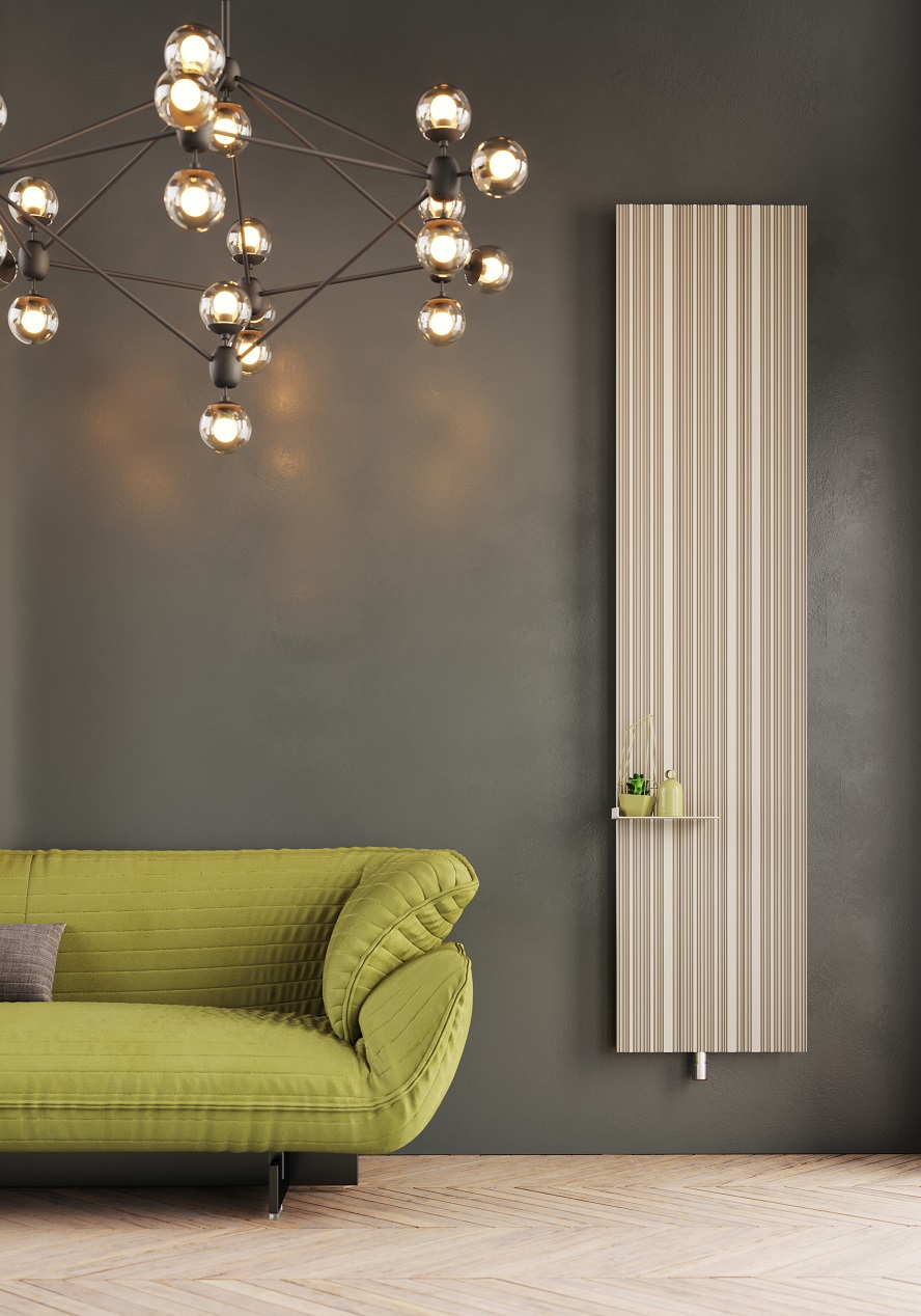 Tessuto, da un punto di vista estetico, è nato da una riflessione sulle trame dei tessuti e dalla volontà di riprodurne l’ordito sulla superficie di un termoarredo verticale.