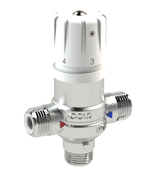 La valvola termostatica OMBG permette di scegliere la temperatura massima di erogazione e di impostarla come predefinita in modo da evitare scottature e sprechi di acqua calda. Con una valvola termostatica posizionata sulla linea della calda, infatti, si garantisce la temperatura massima a prescindere da eventuali variazioni di portata, pressione e temperatura.