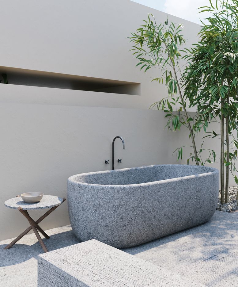 VELTHA Outdoor (Soriano Nel Cimino, VT) presenta la vasca monolite da bagno AQUA, una creazione interamente realizzata in peperino naturale che incarna la filosofia dell’azienda: equilibrio, rispetto per la natura e valorizzazione della materia.