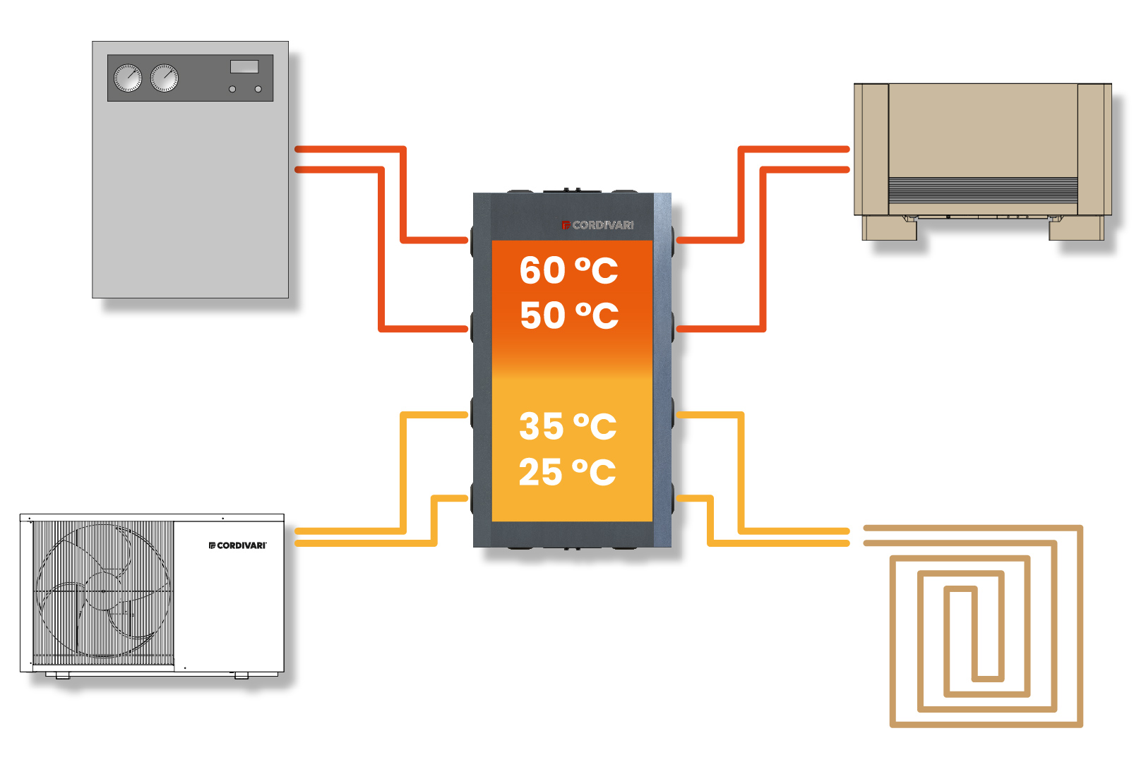VOLANO CUBE di Cordivari è il nuovissimo serbatoio inerziale pensile compatto per pompa di calore, utilizzabile come volano termico o separatore idraulico, adatto anche ad installazioni esterne ed in grado di fornire perfetta stratificazione e protezione dalla condensa.