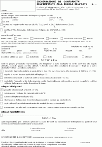 la dichiarazione in ogni copia deve essere firmata in originale sia dal titolare ( o legale rappresentante) che dal responsabile tecnico dell’impresa installatrice, se persona diversa dal titolare. Chi ha redatto il progetto risponderà a tutti gli effetti di quanto ha esposto, ma non può e non deve firmare la Dichiarazione di Conformità, la cui responsabilità è sempre e solo del titolare e del responsabile tecnico della ditta installatrice.