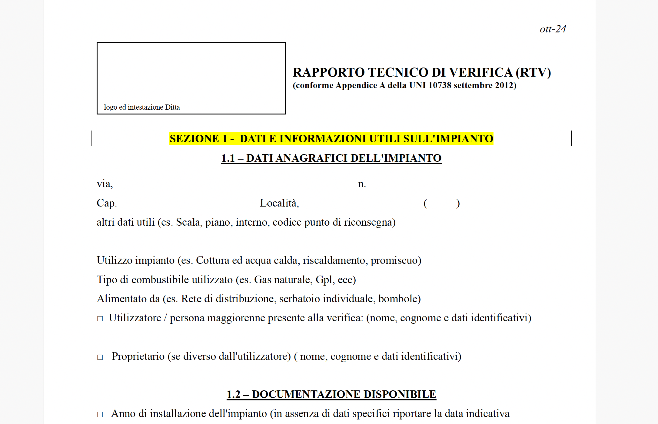 Prima di effettuare delle modifiche sull’impianto è necessario verificare l’idoneità dello stesso, come previsto dalla UNI 10738 “Impianti alimentati a gas, per uso domestico, in esercizio. Linee guida per la verifica dell’idoneità al funzionamento in sicurezza” a cui si rimanda per una lettura integrale e compilare il Rapporto Tecnico di Verifica (NOTA: vedi modulo esplicativo allegato).