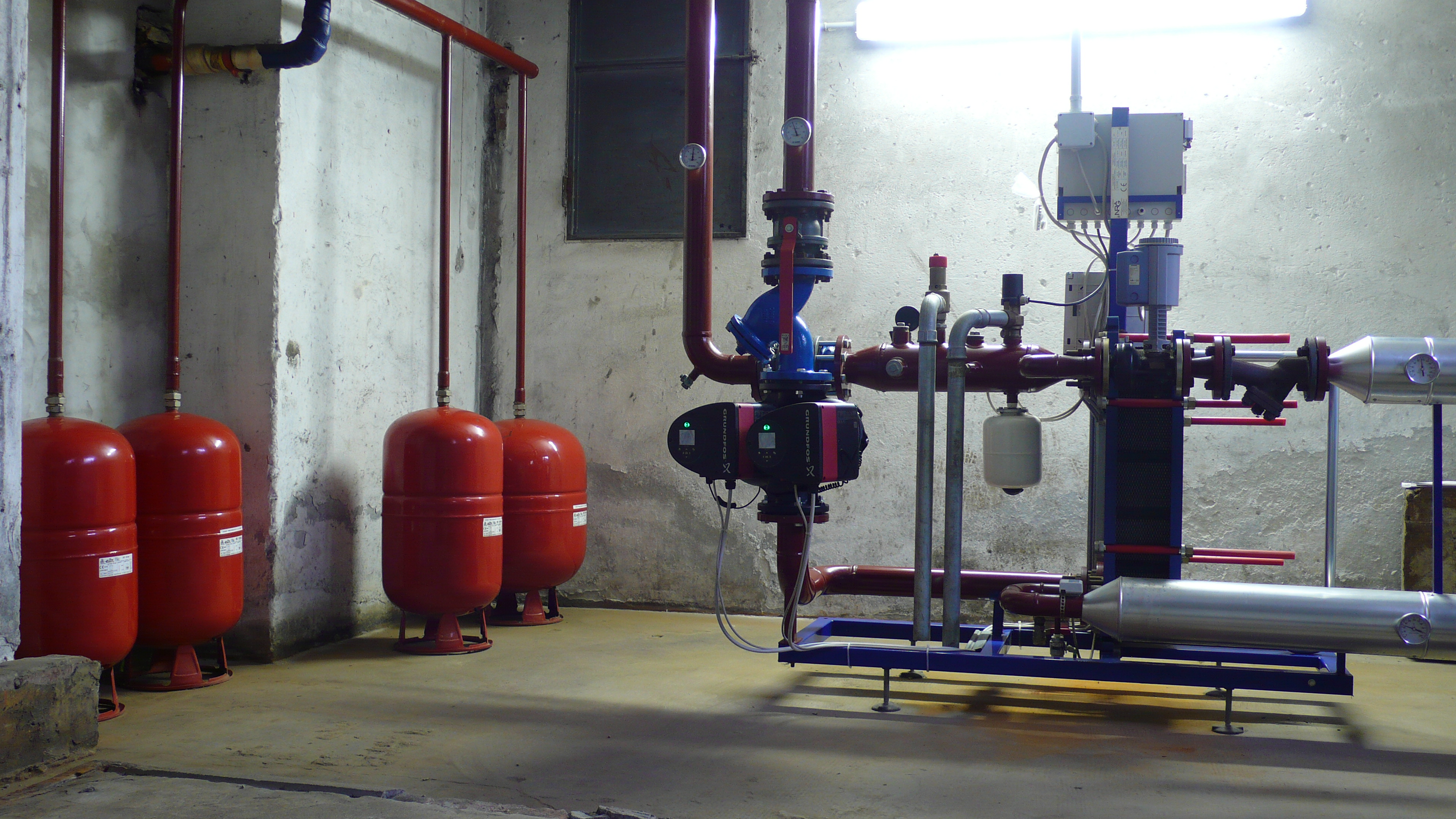 A guidare la ristrutturazione è stato l’obiettivo di ridurre i consumi energetici di riscaldamento, grazie all’applicazione delle diverse normative, tra cui la UNI 10200. È stata sostituita la pompa preesistente, che era leggermente sovradimensionata e un po’ obsoleta. E’ stata installata una pompa Grundfos Magna 3 D 80-120F, elettronica, a giri variabili, che adatta in ogni istante il suo funzionamento sulla base delle effettive esigenze del sistema edificio-impianto, evitando così anche i piccoli inconvenienti di rumorosità e vibrazione delle valvole. La centrale termica è stata inoltre messa a norma con adeguamento generale dell’impianto elettrico e dei sistemi di sicurezza.