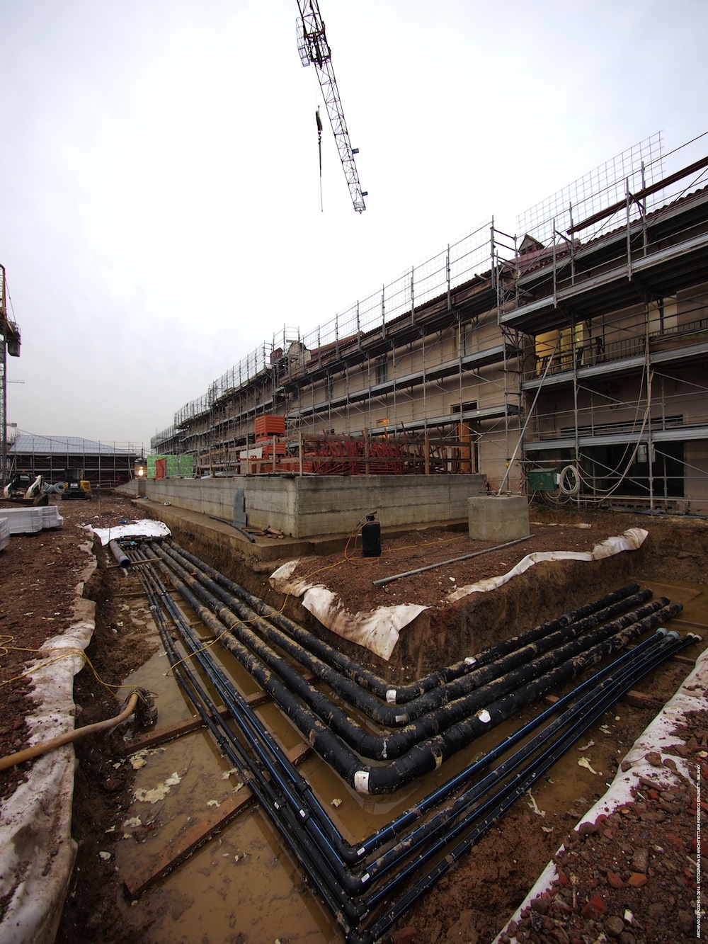 Gli impianti in via di completamento, nella corte della Cascina Triulza