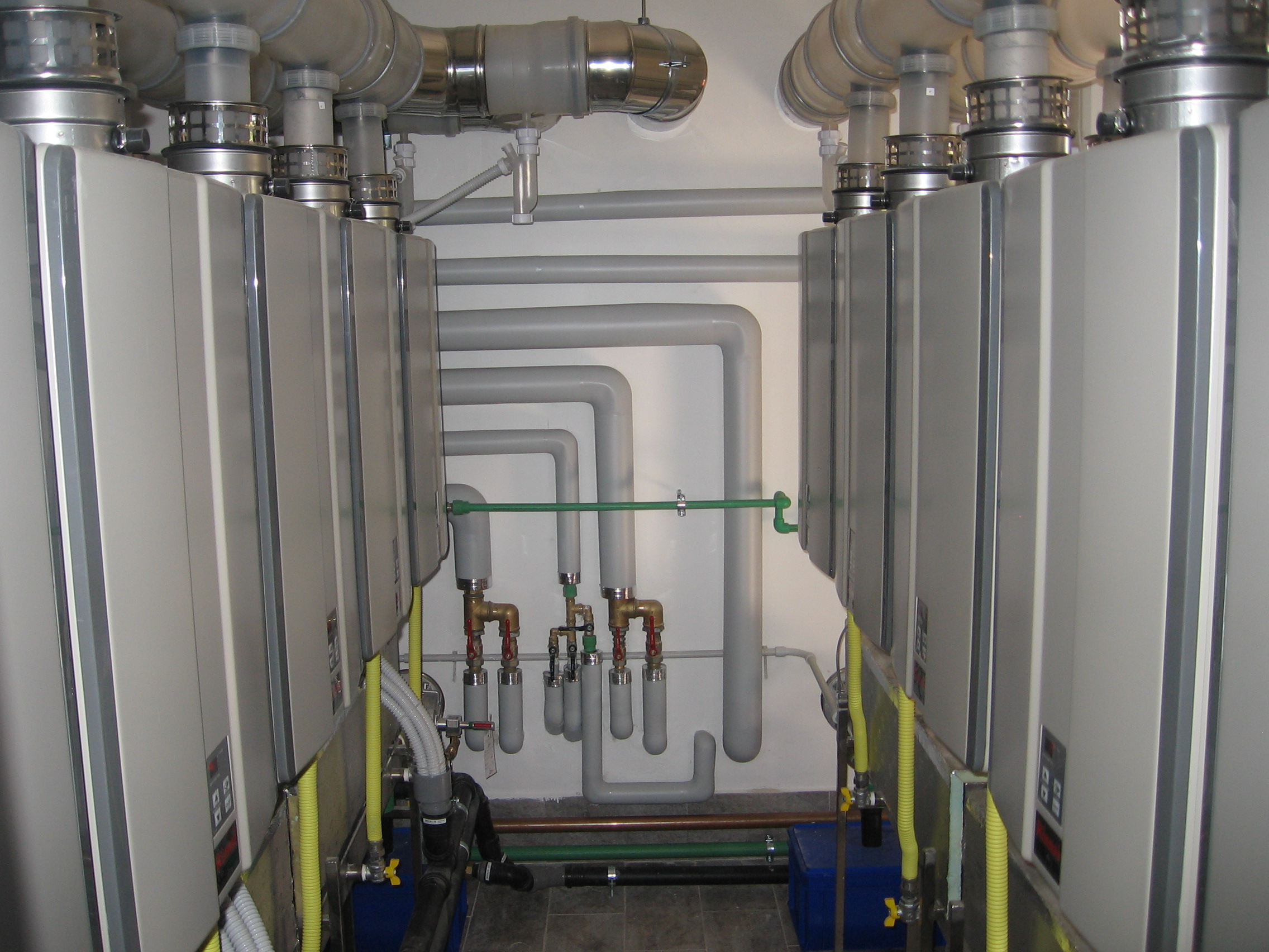 La scelta è ricaduta sugli scaldacqua Infinity di Rinnai, produttori di ACS di tipo istantaneo a gas a condensazione e predisposti per l’installazione interna, dispositivi che oggi sono a servizio di 9 accumuli Rotex Sanicube Solaris (modello 538/16/0 P) collegati a 26 pannelli solari.