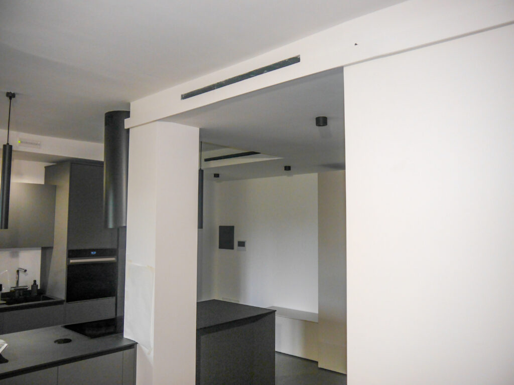 Grazie alle dimensioni compatte, l’unità interna si adatta a qualsiasi stile e ambiente, integrandosi quindi perfettamente anche in un appartamento di 90mq: in questo caso, l’unità interna canalizzata è stata inserita in un controsoffitto creato ad hoc, nel corridoio tra la zona giorno e notte.