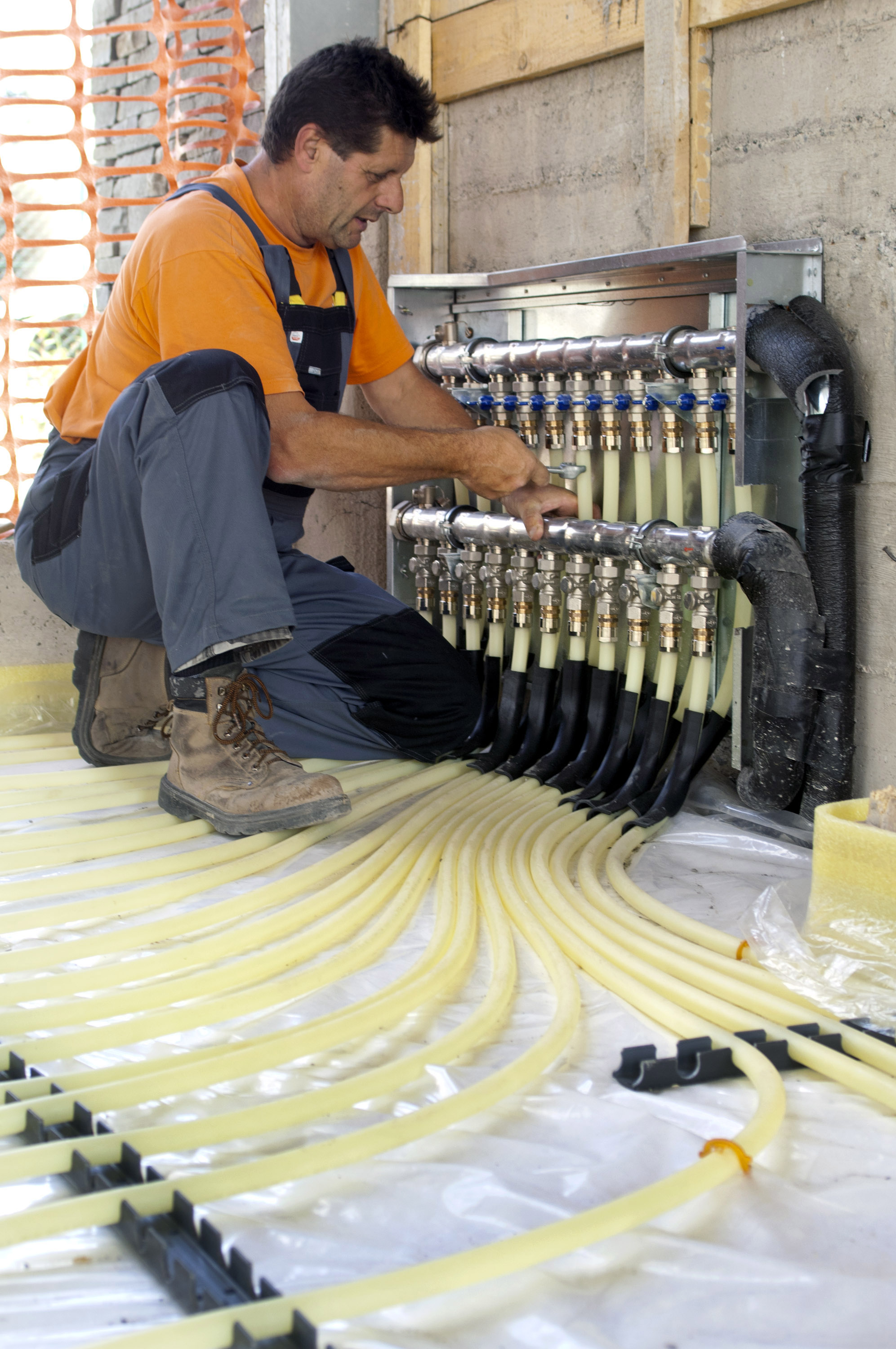 Per la stesura dei tubi, Fonterra Industry ha consentito di combinare due soluzioni: per superare grandi distanze e rettilinei è stato utilizzato un binario di incastro tubazione, applicabile sullo strato di isolamento, mentre per descrivere le curve, il tubo (in questo caso la variante PE-Xc 20×2,0 mm) è stato fissato con graffe mediante un utensile dall’utilizzo intuitivo. Date le specificità costruttive del capannone, il tubo è stato posato su lastre isolanti di EPS di spessore 30 mm, fornite in fogli formato 1×0,5 m; vi è inoltre stato applicato un foglio di polietilene a titolo di barriera all’umidità. L’impianto, ultimato in pochi giorni, è stato allacciato a un collettore di tipo industriale provvisto di 11 attacchi, installato facilmente con le staffe di supporto e posizionato in una nicchia.