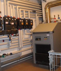 “Per questo impianto – spiega Andrea Carcianelli, installatore e titolare di Carcianelli Impianti – abbiamo dovuto lavorare in spazi ristretti, considerata l’importanza dei componenti da installare. Il sistema risulta infatti composto da caldaia a condensazione integrata con impianto solare termico e generatore di calore a biomasse, 13 pompe per alimentare ogni piano dei pannelli radianti dell’edificio, circuito radiatori, fan coil, acqua calda sanitaria, riscaldamento piscina e vicina dependance, 3 scambiatori di calore (due a piastre e uno a tubi), puffer inerziale da 2.000 litri, 8 valvole miscelatrici e relative tubazioni. Il principale plus dell’impianto? Sicuramente un utilizzo spinto delle biomasse su un edificio completamente ristrutturato, mentre, per quanto riguarda il funzionamento, il più grande vantaggio è la possibilità di sfruttare in modo importante le fonti rinnovabili. I risultati si sono visti durante lo scorso inverno, quando la caldaia a gas non è quasi mai entrata in funzione, tranne in alcune giornate di freddo pungente e durante la straordinaria nevicata del 2012 che ha colpito anche il comune di Urbino. In totale, per l’installazione completa dell’impianto, che ha richiesto dalle 2 alle 4 persone contemporaneamente, ci sono voluti 3 mesi lavorativi”.