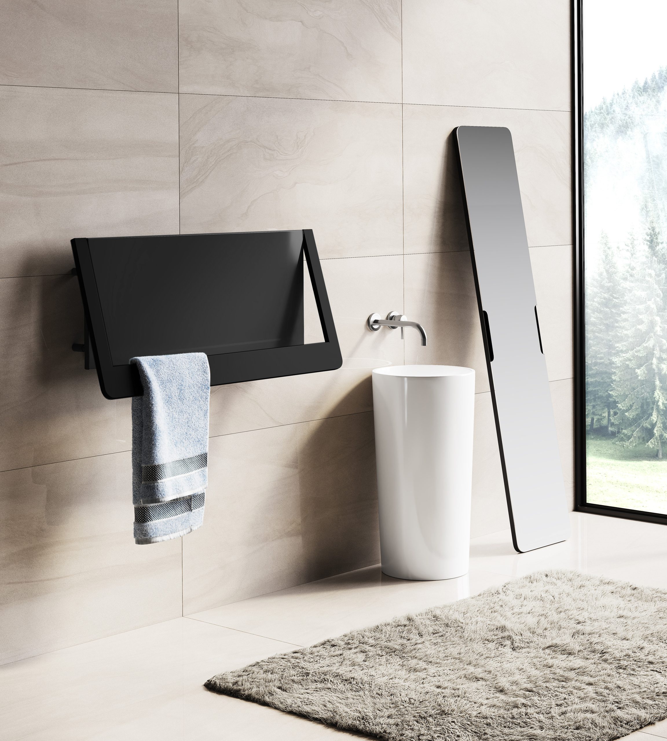 Il termoarredo è disponibile sia nella versione con funzionamento ad acqua, sia nella versione elettrica, che è dotata di power unit e cronotermostato ambientale digitale in radiofrequenza, posizionato lateralmente per risultare maggiormente fruibile senza interferire con il design del radiatore.