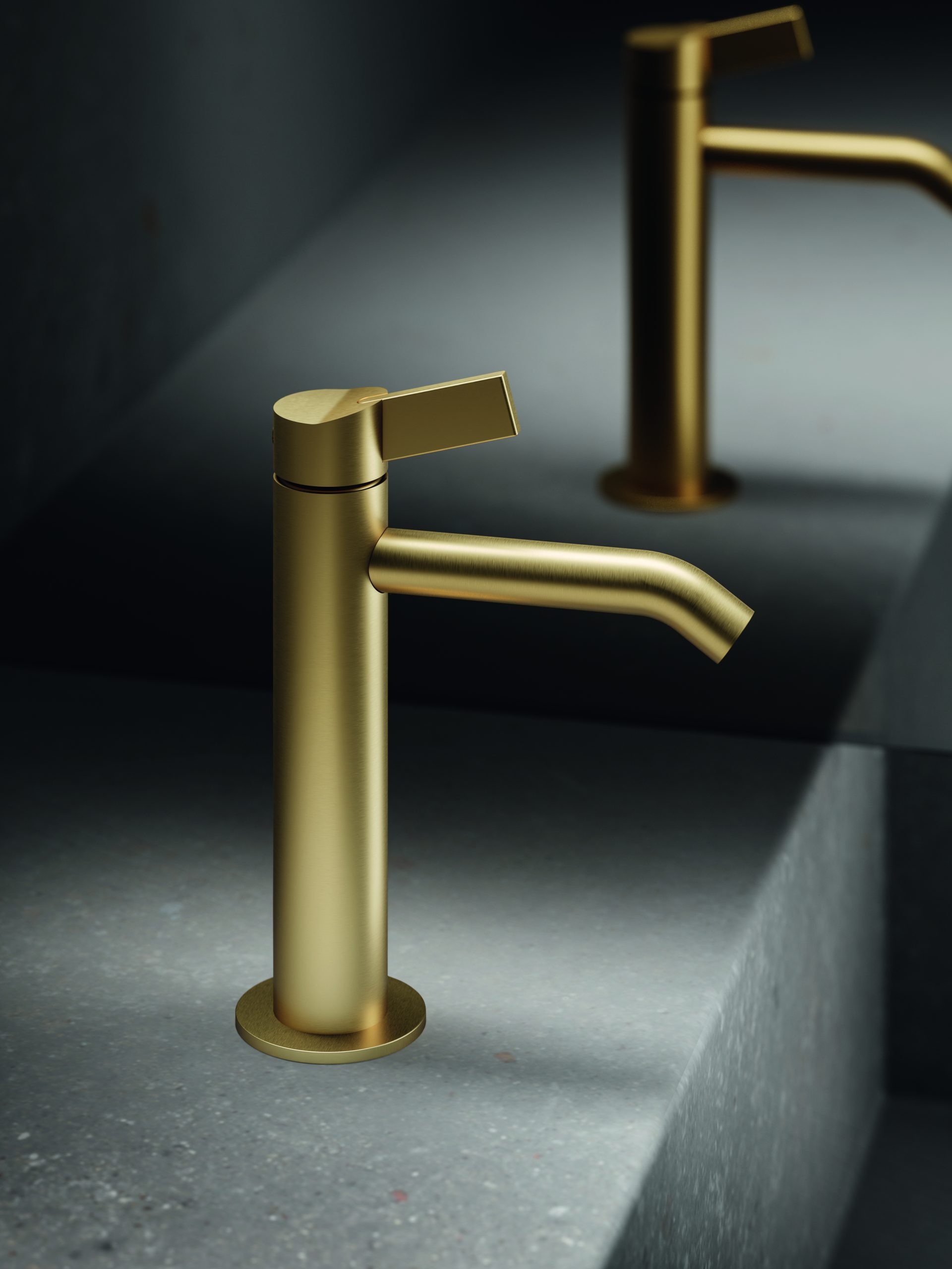 • Caratteristiche – Rubinetto reinterpretato come oggetto architettonico, con la piega (elemento distintivo della linea) che diventa al tempo stesso gesto estetico e soluzione funzionale, creando un punto di tensione visiva e rompendo la linearità con sobrietà e rigore