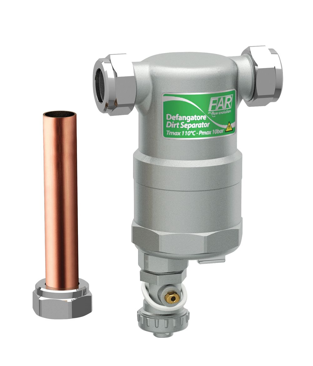 FAR presenta il defangatore brevettato CompactFAR per circuiti di riscaldamento che permette di eliminare le particelle di impurità che circolano all’interno dell’impianto garantendo maggior protezione alla caldaia.